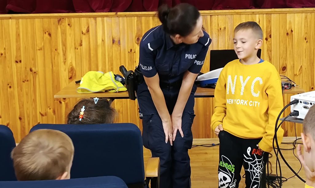 Policjantki z jarosławskiej komendy odwiedziły uczniów klas pierwszych Szkoły Podstawowej nr 1 im. Ks. Bronisława Markiewicza w Pruchniku. Spotkanie odbyło się w ramach działań „Bezpieczeństwo – pierwsza klasa”. Funkcjonariuszki przypomniały dzieciom podstawowe zasady poruszania się po drodze, znaczenie odblasków i ostrożności w kontaktach z nieznajomymi. Spotkanie miało formę rozmowy i zabawy, a na zakończenie najmłodsi otrzymali odblaski.