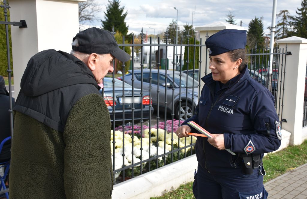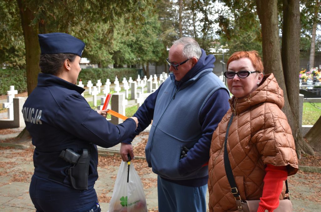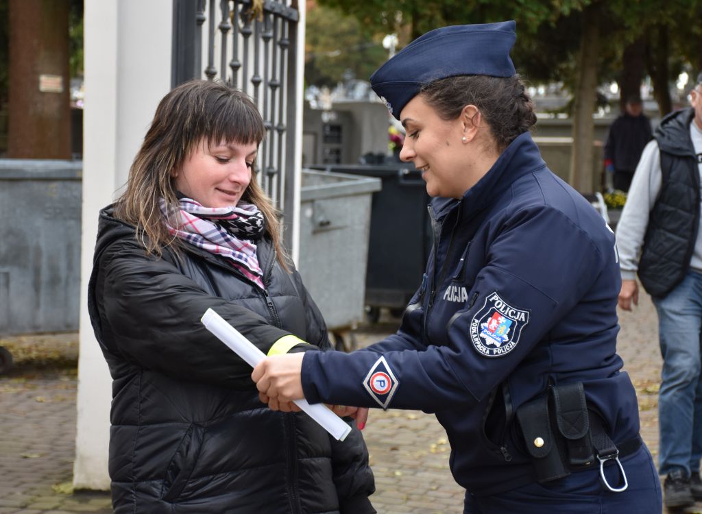 Kilka dni przed uroczystościami Dnia Wszystkich Świętych, jarosławska dzielnicowa przeprowadziła działania profilaktyczne na terenie cmentarza komunalnego. W ramach akcji, policjantka rozdawała odwiedzającym elementy odblaskowe, przypominając o zasadach bezpiecznego poruszania się po zmroku.