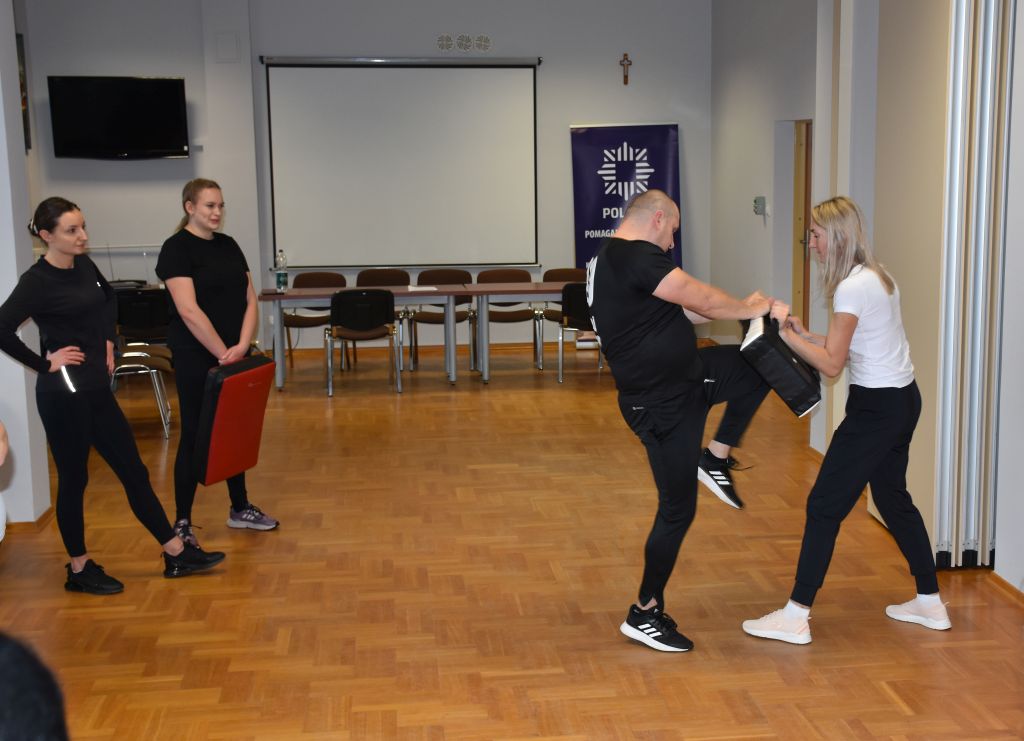 Zajęcia prowadził doświadczony instruktor technik interwencji podkom. Maciej Szpunar. Policjant omówił zasady bezpieczeństwa osobistego oraz przedstawił skuteczne metody obrony w sytuacjach zagrożenia. Uczestniczki miały okazję przećwiczyć różne scenariusze, ucząc się jak zachowywać spokój, wykorzystać technikę oraz przewagę taktyczną w sytuacjach wymagających natychmiastowej reakcji.