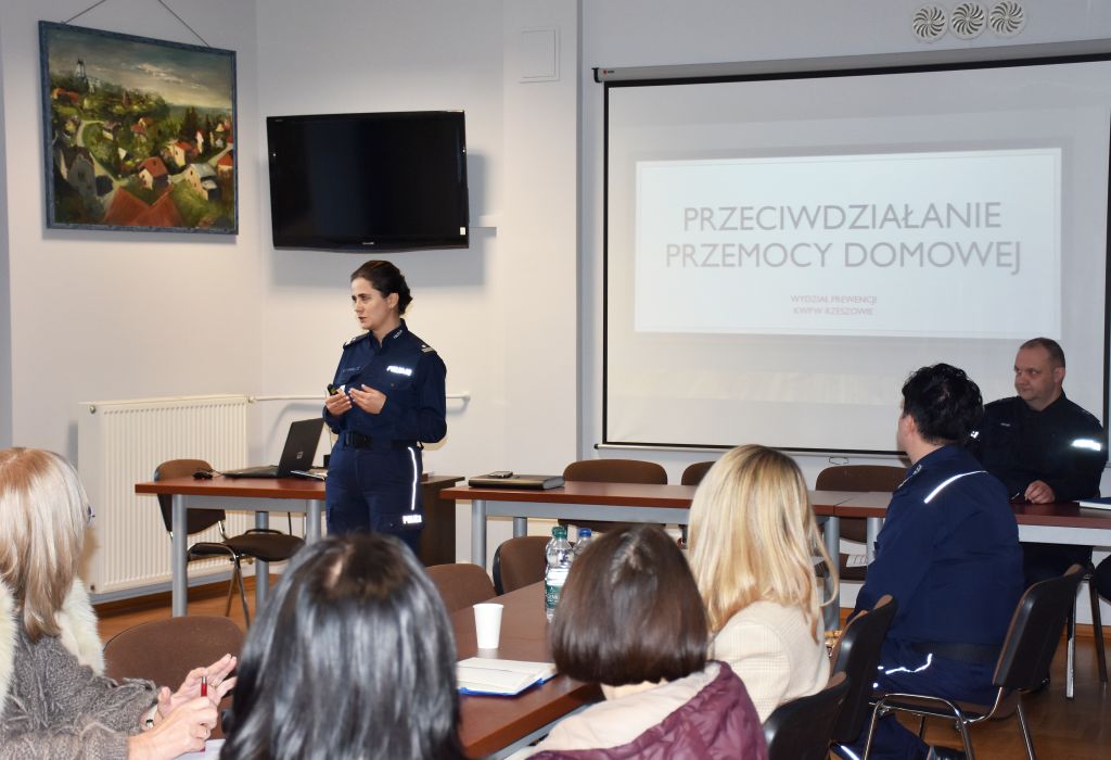 Szkolenie poprowadziła podinsp. Elżbieta Siupik z Wydziału Prewencji Komendy Wojewódzkiej Policji w Rzeszowie. Jego celem było usystematyzowanie wiedzy dotyczącej rozpoznawania symptomów przemocy, właściwego reagowania na sytuacje zagrożenia oraz prawidłowego wypełniania dokumentacji związanej z procedurą „Niebieskiej Karty”.