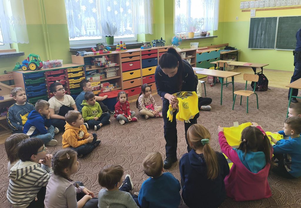 Na zakończenie tych niecodziennych lekcji, dzieci otrzymały kamizelki odblaskowe przekazane przez Gminny Ośrodek Pomocy Społecznej w Rokietnicy, którego przedstawiciele również uczestniczyli w spotkaniach.