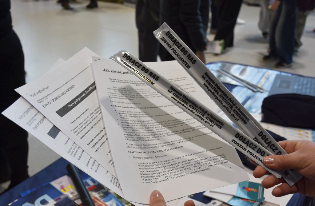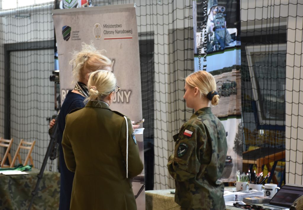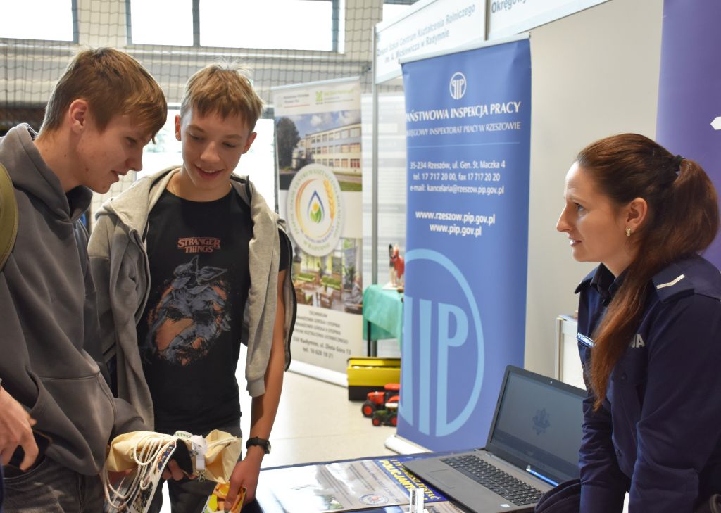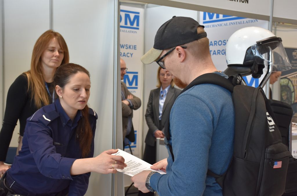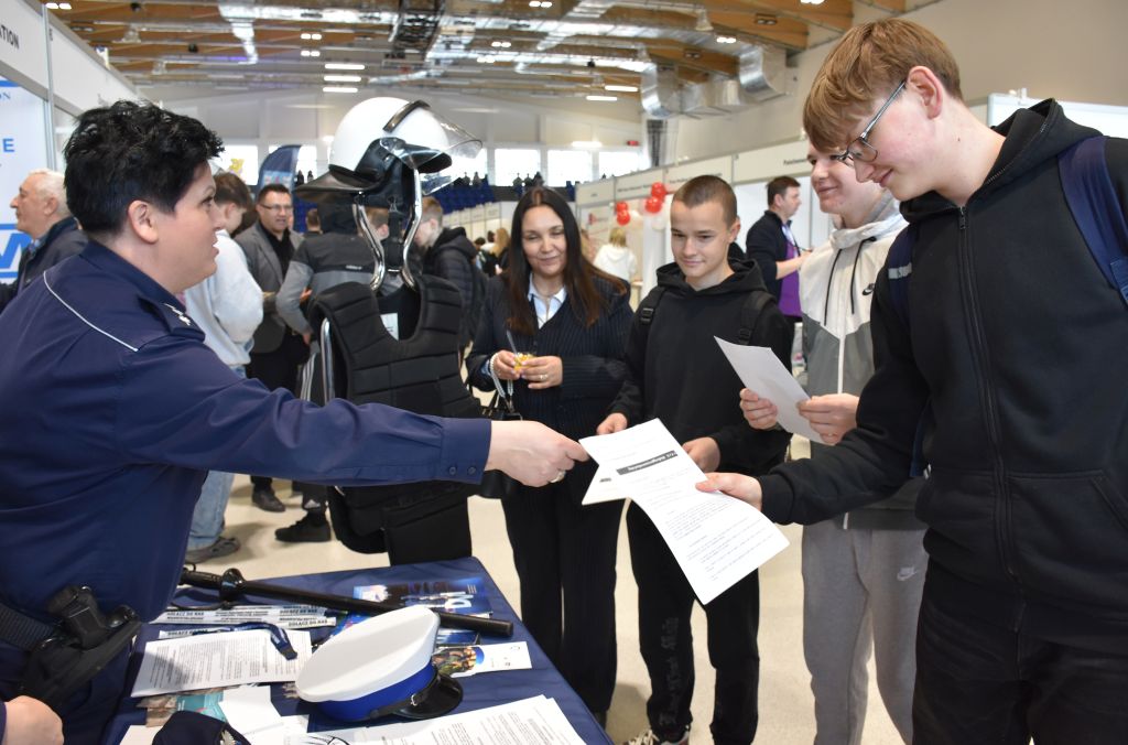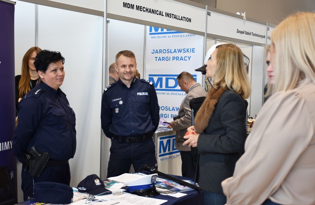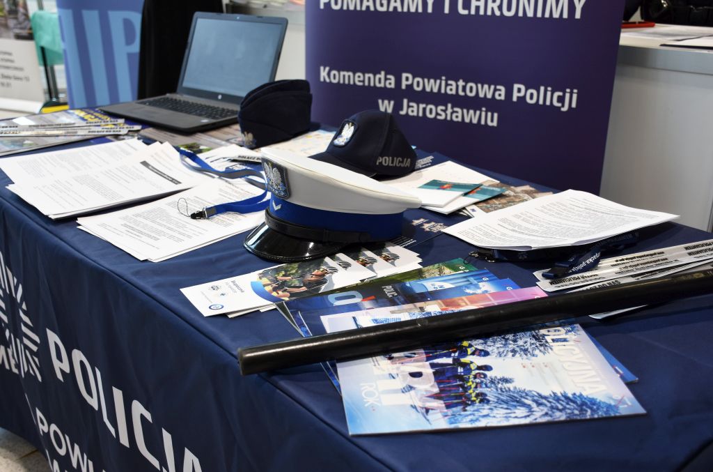 Na targach nie zabrakło również przedstawicieli Policji. Mł. insp. Marek Hajduk - I Zastępca Komendanta Powiatowego Policji w Jarosławiu wziął udział w uroczystości otwarcia tego wydarzenia. Jarosławskie policjantki st. asp. Agnieszka Stysiał i sierż. Wioletta Wywrot-Głąb, a także pracownica cywilna Zespołu Kadr i Szkolenia odpowiadały na pytania zainteresowanych służbą w Policji. Uczestnicy mogli uzyskać szczegółowe informacje o wymaganiach, procesie rekrutacji oraz wyzwaniach związanych ze służbą w Policji. Zainteresowani otrzymali również ulotki z informacjami dla kandydatów do służby.